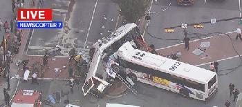 當局表示,一輛開往紐瓦克的未載乘客的59號巴士和13號巴士在一個十字路口相撞。其中一輛巴士幾乎被撞成兩截,乘客被困在車內。
