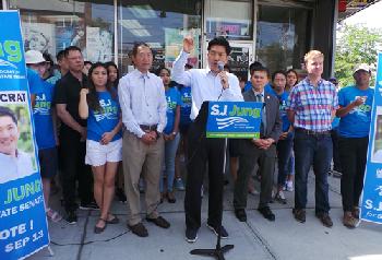 (紐約.羊展恬23日報導)正在參選民主黨第16區州參議員候選人鄭勝振(S.J. Jung)日前宣佈針對小企業政策的重點,包括緩和對小企業的異常限制和鋪天蓋地的罰單,並實施預警系統,擴大提供給小企業的小額貸款,以及倡導在城市推出租金穩定法案,打擊哄抬漲價的商用樓租金等,受到眾多華韓裔企業及商家的歡迎。
