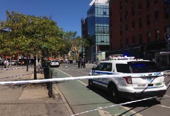 (紐約.留天佑24日報導)華埠亞倫街夾東百老匯路段,22日上午10時發生一起撞人後不顧而去事件(圖),傷者被碾斷雙腿,被送往表維醫院救治,情況嚴重。