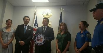 金兌錫昨日在其法拉盛辦公室舉行記者會(圖),宣佈將在26日舉行返校開學送孩童書包活動,除提醒孩童在開學日即將到來之際努力求學,聽從父母、師長的教悔之外,也要注意校園霸凌問題。金兌錫說,他剛移民到美國時,也曾因為不懂英文在學校受到霸凌,希望社區孩童們勇於向家長反應,並勇敢地向霸凌者說「不」。出席記者會的還包括第一保健代表王惠嶽、高曉晶、109分局社區事務組警探歐唐納(Kevin O’Donnell)及警員Nancy Vuong等人,與會者對於活動都表示支持與肯定。主辦方表示,當天將自上午11時30分開放民眾入場,預定向社區發放800個新書包,但家長必須帶著孩童出席,法拉盛109分局地址在法拉盛友聯街夾37大道街口。