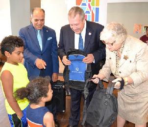 州參議員史塔文斯基則表示,她很高興與市議員卓姆合作,每年發送書包給社區有需要的孩童。