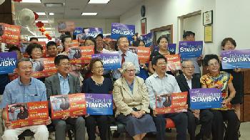 出席人士還包括前會長周洪林、美國江浙工商總會會長張玉龍、中美商會前會長楊若若等社區僑領,與會者也呼籲溫州鄉親們支持史塔文斯基,在9月13日的初選日投她一票。