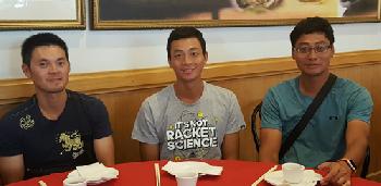 台灣網球一哥盧彥勳(中)昨日在哥哥盧威儒(右)及泰國籍教練Danai Udomchoke(左)陪同下,出席紐約華人網球協會邀約的歡迎午宴。(圖:羊展恬攝)