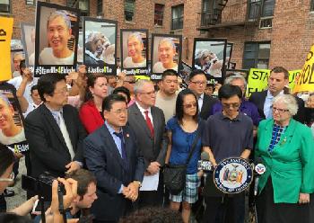 (紐約.羊展恬2日報導)68歲華裔謝俊文(Vincent Chun Man Tse,前譯謝進文)在今年7月22日因車禍糾紛遭44歲非洲裔男子安德森(Cleamon Anderson)攻擊傷重致死。至今檢方僅對嫌犯控以攻擊罪名,不但仍沒有進入審理(Trial)程序,且僅以5萬元保釋金被保釋,且安德森還將可能透過認罪減刑協議只面臨兩年的監禁,引起社區各界普遍不滿。包括謝俊文的兒子謝偉康及多名民選官員、社區代表、百餘民眾1日在法拉盛街頭舉行示威遊行,要求嫌犯受到嚴厲制裁。