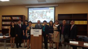自強社區視頻中心中文平台昨日宣佈正式開放,圖為出席記者會的自助社區服務公司執行長凱普蘭(左五)及自強社區中心華人顧問委員會主席甘台甯(左四)等多位理事會成員。(圖:羊展恬攝)
