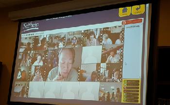這是參加在今年7月開始的自強社區中心(Selfhelp Community Services)專為長者設立的視頻中心的徐先生,昨日透過電腦視訊系統接受記者提問,說明自己參加視頻中心後生活的改變。