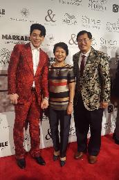 駐紐約台北經文處徐儷文大使(中)昨日也出席紐約2017春夏時裝週對設計師馬蘭布瑞頓(左)的創意深表嘉許,右為身穿馬蘭布瑞頓設計服飾的觀光局駐紐約辦事處主任張維庭。(圖:羊展恬攝)