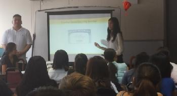由華策會皇后區分會青少年服務中心昨日在法拉盛舉行升大學輔導計劃說明會,由華策會皇后區分會青少年服務中心負責人黃健仁(左一)等人員進行說明。(圖:羊展恬攝)
