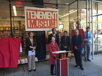 (紐約.留天佑16日報導)位於華埠下東城果園街(Orchard St.)的「移民公寓博物館」(Tenement Museum),昨日舉行新展區動土儀式,由包括市議員陳倩雯在內的多位民選官員主禮(圖)。將於明年7月開幕的展區,包含一個典型勞工家庭的華裔移民故事。