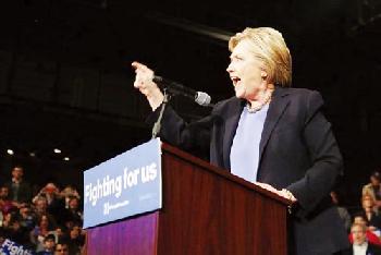 (紐約.明報16日訊)北卡羅來納州格林斯博羅市消息,在羅患肺炎康復後,希拉莉(圖)週四又重新踏上了競選的征途。 她說,羅患肺炎使她有時間「坐下來,理一理思路」,把最重要的問題再思考一遍。