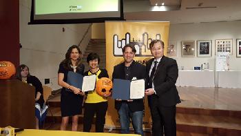執行長黃蕙雯昨日代表台灣新創競技場與NYC Media Lab執行主任Justin Hendrix雙方共同簽署合作備忘錄儀式。紐約市經濟發展局副局長Eleni D. Janis與駐紐約經文處經濟組主任凌家裕也到場見證簽約儀式並對此項合作方案表示肯定與支持。