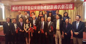 (紐約.羊展恬22日報導)受邀出席全美台灣同鄉聯誼會年會途經紐約的前中華民國副總統吳敦義夫婦及中國國民黨副主席郝龍斌,昨晚一起出席在法拉盛舉行的僑宴,來自美東地區黨員同志及支持者近300人出席,由僑領林映君主持,並帶領出席者高呼「國民黨加油」、「台灣加油」。
