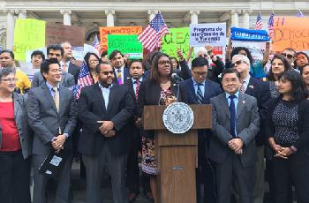 (紐約.留天佑6日報導)公益維護人詹樂霞昨日在市政廳前舉行集會,促請聯邦移民及公民服務局,加速對入籍申請的處理,部份申請積壓嚴重,導致他們未能在今年大選中投票。