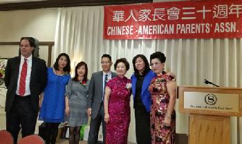 (紐約.羊展恬15日報導)華人家長會昨晚在法拉盛舉行30週年年慶暨新任會長就職典禮,來自美東地區教育界、民選官員、教師、學生及家長代表300多人與會共同慶祝,十分熱鬧。包括州參議員艾維拉、市議員顧雅明、市主計長斯靜格及皇后區長凱茲的代表等,多位州市議員昨日都到場祝賀,並頒發表揚狀,感謝華人家長會30年來為社區教育的服務貢獻。