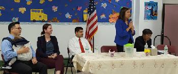 苗承業昨日與參選25選區州眾議員的共和黨候選人南亞裔阿里(Usman Ali)一起前往法拉盛台灣會館老人中心拜票,尋求支持,受到台灣會館老人中心會長林淑滿及會員耆老的歡迎(圖)。台灣出生,9歲隨家人移民到美的苗承業,會說多種語言,能夠說上一口台語的苗承業,讓台灣會館的老人家十分驚訝,立刻拉近彼此距離。