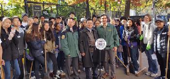 (紐約.羊展恬11日報導)來自紐約亨特學院50位高中學生昨日一早齊聚在拉盛布蘭登公園,進行一項清潔運動,在多位師長的帶領下參與該校的社區服務日。這項活動也是市議員顧雅明辦公室推動下,在法拉盛進行的第三場公園清潔運動,希望透過學生義工的參與,鼓勵居民發揮公德心,愛護自己的社區環境(圖)。