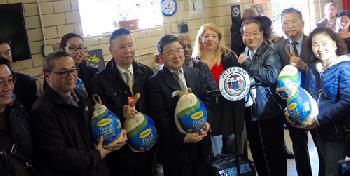 (紐約.羊展恬18日報導)感恩節來臨之際,由市議員顧雅明辦公室與多個社團及企業團體合作向法拉盛社區贈送300隻火雞活動,昨日在法拉盛啟動,包括紐約市議員顧雅明,法拉盛華商會理事長胡師功總幹事杜彼得,及社區企業團體代表,一起展開感恩節送火雞活動,由於顧雅明感恩節送火雞活動已在社區推行多年,為許多有需要民眾家庭帶來過節的溫暖,他感謝法拉盛華商會等社團企業的支持讓這項送火雞活動辦的十分有意義。