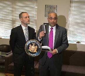(紐約.羊展恬17日報導)皇后區州參議員裴洛塔(Jose Peralta)昨日聯合新當選的州眾議員邦威爾(Brian Barnwell)舉行記者會,宣佈將在明年1月的州議會會期開始時,兩人聯手提出新法,要求紐約市執法人員開罰單時必須提出圖像的證據。