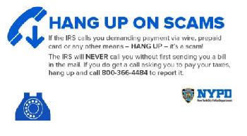 (明報24日訊)據紐約市警總局消息,一位市民近日被冒充聯邦調查局(FBI)探員的騙徒,以詐騙電話騙走6000元。警方呼籲民眾提防詐欺電話,保護個人財產安全。