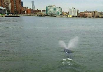一艘屬於紐約市警港口科的船隻,於31日早上10時11左右,在市長官邸格麗絲莊園(Gracie Mansion)對開的東87街東河,發現鯨魚蹤影。