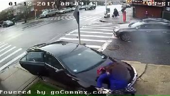 據監控攝像頭顯示,汽車失控時後座的一名乘客試圖跳下這輛車,所以車門大開。