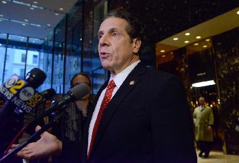 (明報19日訊)州長葛謨(圖)與川普昨日在川普大廈內進行了一個小時的會面,共同商討了紐約醫保、稅收、基礎建設與住房等問題。