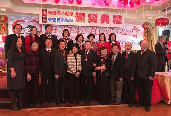 會長王玉英(前排右四)感謝社區各界的支持,讓該會持續為社區長者服務。會中,駐紐約台北經文處處長徐儷文大使(前排左五),昨日也分別頒發愛心勳章給包括江俊霖、胡慶祥(前排左四、左六)及李金標(後排左一)等三位華人企業家;並頒發愛心服務勳章給郭至隆、李豔翠、林惠宜、孫玉鶯、王莉莉及林慧綺等人。