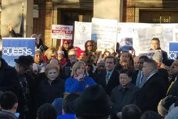 (明報7日訊)為爭取移民權益,皇后區區長凱茲5日號召各族裔社區齊聚皇后區區公所大樓前舉行示威抗議活動,強調皇后區的多元文化及包容,譴責新任總統川普的反移民行政命令,號召皇后區各族裔居民團結一起,誓言永不放棄爭取移民權益。