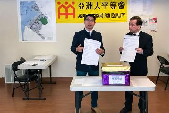 (明報30日訊)包括布碌崙日落公園在內的市議會第38選區參與式預算項目自25日起開始投票,第38選區市議員萬齊家(Carlos Menchaca)及亞洲人平等會行政總監瞿遠義昨日連袂在布碌崙亞平會辦公室舉行記者會,向媒體及民眾介紹投票項目,鼓勵市民積極參與。
