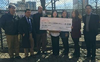 (明報31日訊)位於法拉盛40路法拉盛布蘭登公園一直以來因髒亂不堪,社區民眾不滿,紛紛向市議員顧雅明辦公室投訴,經過顧雅明辦公室與法拉盛商改區及多個社區組織協調之下,決定由商改區與皇冠垃圾公司合作清掃。昨日皇冠垃圾公司也特別捐贈6000元經費,作為專門清理法拉盛布蘭登公園垃圾費用支出,並舉行捐贈儀式,由法拉盛商改區代表接受(圖,本報記者攝)。