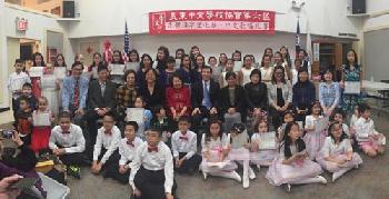 (明報4日訊)美東中文學校協會第六區「正體漢字文化節─中文歌唱比賽」日前於紐約華僑文教中心舉行,共有7支團體隊伍參賽的150多名中文學校師生及家長與會競賽。