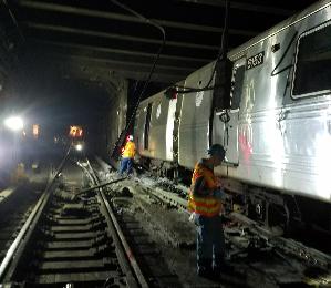 大都會運輸署(MTA)官方解釋說,該趟列車的緊急剎車在脫軌前已被啟動,但調查員仍在確定脫軌原因。運輸工會(Transport Workers Union)軌道部主席納瓦羅(Paul Navarro)在觀察事故現場後表示,「列車像開瓶器一樣被剝開。」