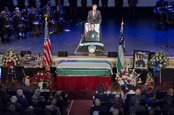 (明報12日訊)遭槍殺的女警員法米莉亞週二舉行葬禮,市長白思豪葬禮上致辭時,數百名市警轉身背對表達抗議。市長在法米莉亞遇害次日便與兒子前往德國,其行為令市警不滿,雙方的不合再度浮上台面。