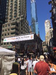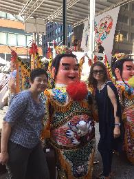 (明報25日訊)由大紐約區台灣人社團聯合會主辦的首屆「珍珠奶茶節」,昨於時報廣場秋日祭活動上舉行。當日邀請到九天民俗技藝團等表演團體演出,50街至53街附近封街為步行街,熱鬧非常。參與活動的黃筱玲(右)、陳淑雲(左)大讚節目精彩。