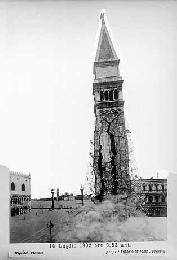 1902年7月14日,意大利威尼斯聖馬可廣場的聖馬可鐘樓由於牆體出現裂縫而倒塌。聖馬可鐘樓(Campanile di San Marco)是意大利威尼斯的地標之一,高98.6公尺。上方的方形建築外牆,分別由獅子與威尼斯的女性象徵(正義女神,la Giustizia)所妝飾。鐘樓最上方的尖塔頂端,則放置了一個金色天使加百利形狀的風向標。現時所見的聖馬可鐘樓造型是在1514年建造的,倒塌後於1912年重建完成。聖馬可鐘樓的造型受到世界各地廣泛的模仿,包括美國西雅圖的國王街車站、德國基爾的市政廳、澳洲的布里斯本市政廳、南非伊莉莎白港鐘樓等。(資料來源:維基百科)