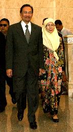 現年61歲的安華1993年12月出任馬來西亞副首相,1998年9月被革職,同年被捕入獄。1999年4月,他因瀆職罪被判處6年監禁,同年又因雞姦罪被判9年監禁。2004年9月,馬最高法院撤銷安華犯有雞姦罪的判決,安華當庭獲釋。在2008年舉行的大選中,安華領導的反對黨獲得大勝。(中新社)