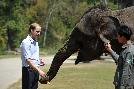 (中國)英國威廉王子昨日在雲南西雙版納展開其第3站行程,他造訪當地大渡崗鄉猛滿傣族村,與當地居民交流,還給大象餵食。