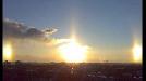 (俄羅斯)俄羅斯車裡雅賓斯克市日前出現了3個“太陽”。奇景,遠望3道太陽從地平線散出的光線,在空中相連成一個半圓,罕見的現象讓人驚呼好美
