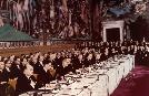 1957年3月25日,法國、西德、意大利、比利時、荷蘭和盧森堡六國政府首腦和外長在羅馬簽署《歐洲經濟合作條約》和《歐洲原子能共同體條約》,合稱為《羅馬條約》。條約於1958年1月1日正式生效,標誌著歐洲經濟共同體的正式成立,也是歐洲一體化的重要步驟。核心內容是:建立關稅同盟和農業共同市場;逐步協調經濟和社會政策